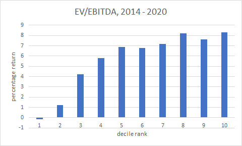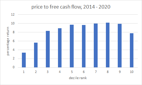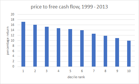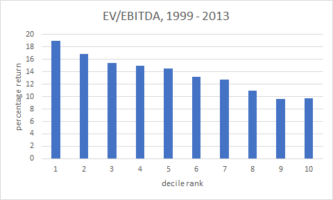 We can put it another way. Maybe by 2014, algorithmic valuation models had come to dominate the world of investing, and the five value formulas that were used by these valuation models were price to sales, price to book, price to earnings, price to free cash flow, and EV/EBITDA. It would be entirely logical, then, that through the process of arbitrage these formulas would fail to predict price movements.