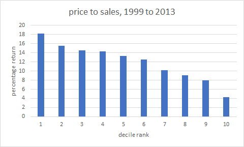 But if we consider the price-to-sales ratio a fully arbitraged factor, perhaps the value inversion is only a statistical artifact, a proof of the workings of arbitrage. Perhaps price still matters. We just need to compare it to something more sophisticated than the top line of the income statement.