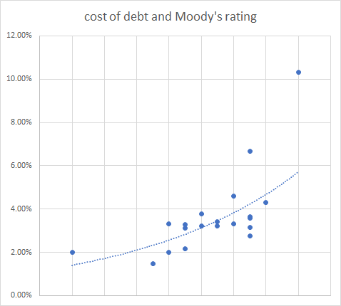 Cost of debt & moody's rating