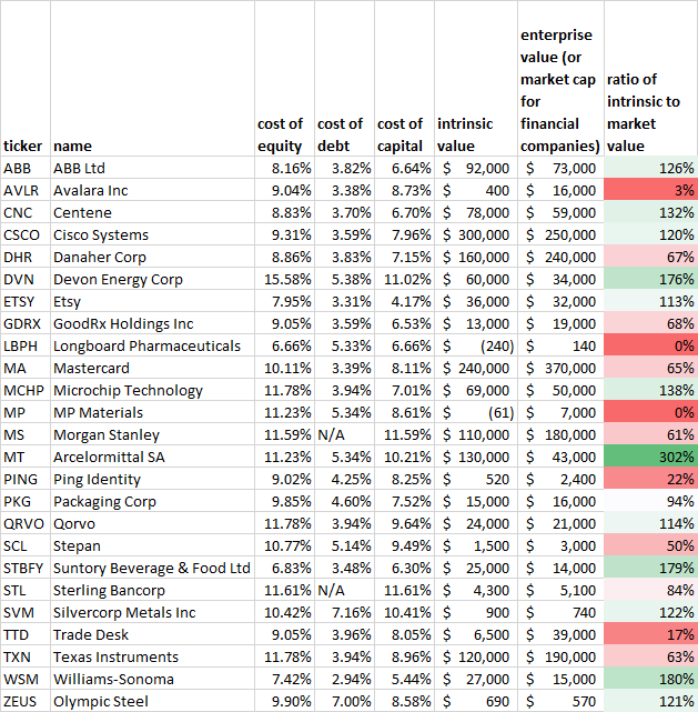 The main factor in coming up with these intrinsic values is, unsurprisingly, each company’s recent and estimated free cash flow. That explains why some of the numbers there may appear somewhat strange.