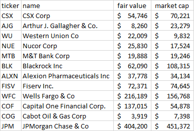 Here are some examples of fair values for a dozen S&P 500 stocks, chosen completely at random: